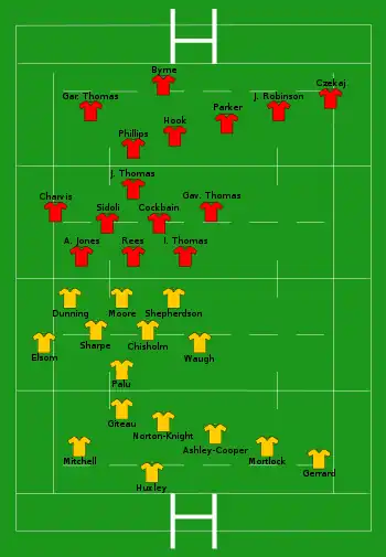 | Try: Palu Sharpe Giteau Hoiles Con: Mortlock (3) Pen: Mortlock | Report | Try: Gareth Thomas Robinson Con: Hook (2) Pen: Hook (2) Drop: Hook |