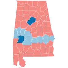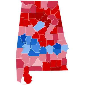 | Tuscaloosa | 45,405 | 57.54% | 32,796 | 41.56% | 711 | 0.90% | 12,609 | 15.98% | 78,912 |
