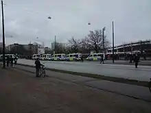 The match was initially met with protest of around 6,000 to 7,000 anti-Israel demonstrators, with speeches held by the leader of the Left Party, Lars Ohly, who while wearing a Palestinian scarf was seen holding a map of Palestine with Israel eradicated.[8][9] The demonstrators were joined by several hundred militants of which around 200 to 300 began attacking police with stones, fireworks and paint bombs.[1][2][10] The anti-Israel rioters included AFA anti-fascists, militant Islamists, organised neo-Nazis,[11][12][13][14] as well as activists from neighbouring countries.[15][16] Police eventually detained around 100 rioters, arresting ten.[17] An additional eighteen rioters were later identified and put on trial for their part in the riots,[18] with several convictions.[19][20][21][22]