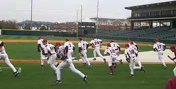 The 2010 Arkansas Razorbacks baseball team represented the University of Arkansas in baseball at the Division I level in the NCAA for the 2010 season. Dave van Horn, a former Razorback player, was the coach in his sixth year at his alma mater.[1] The 2010 club hosted and won the Fayetteville Regional, but fell in the Tempe Super Regional to the top-seeded Arizona State Sun Devils.[2] The team was led by two All-Americans, Brett Eibner and Zack Cox.