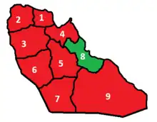 - Source:[4] Data from 16 out of 17 constituencies, missing constituency no. 12 (Duk).
