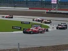 Race action at Brooklands corner, Silverstone at Superleague Formula Round 1