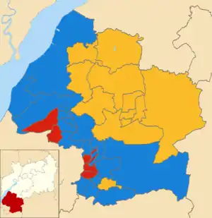 1. 1 2 3 4 5 6 7 8 9 10 11 12 13 14 15 16 17 18 19 20 21 22 23 24 25 26 27 28 29 30 31 32 33 34 35 36 "District election results 2011". South Gloucestershire Council. Archived from the original on 11 May 2011. Retrieved 16 December 2011.
