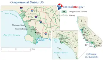 California 36 Jane Harman Democratic 2000 Incumbent resigned February 28, 2011 to become head of the Woodrow Wilson International Center for Scholars.[3]