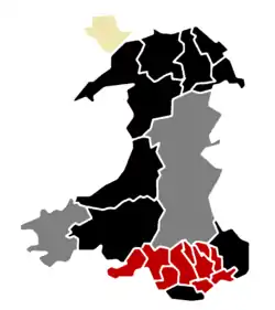 Map showing the results of the elections in Wales