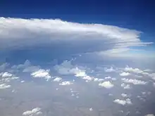 Evidence of an unstable air mass included temperatures in the low to mid 80s °F (27–30 °C), dewpoints that ranged in the upper 60s °F (20 °C) to the lower 70s °F (20–22 °C), and CAPE values ranging from 3500 to 5000 J/kg. Deep-layer wind shear speeds of 40 to 50 knots (46 to 58 mph) enhanced storm structure and intensity.[8] These were present ahead of a cold front extending from a surface low in the eastern Dakotas, southwestward to near the Kansas City area and western Oklahoma, and ahead of a dry line extending from southwest Oklahoma southward into northwestern and west-central Texas. Outflow remnants from the previous night and the early day convection across the Ozarks and the middle Mississippi Valley were a factor in severe weather development with the most aggressive heating and destabilization on the western edge of this activity across the southern Great Plains and just ahead of a cold front.[7] The National Weather Service office in Norman, Oklahoma had warned as early as May 15 that there would be a possibility of severe weather on May 20.[9]