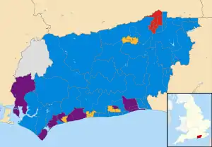 The West Sussex County Council election, 2013 took place on 2 May 2013, as part of the 2013 United Kingdom local elections. All 71 electoral divisions were up for election, which returned one county councillor each by first-past-the-post voting for a four-year term of office.[1] At this election, the Conservative Party was seeking to retain overall control of the council, and the Liberal Democrats to maintain their position as the main opposition party.