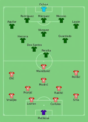 - ↑ "Croatia 1 Mexico 3". BBC Sport. 23 June 2014. Retrieved 24 June 2014.