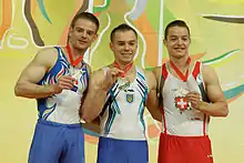 - ↑ "Men's Apparatus Finals Results Parallel Bars" (PDF). Gymnastics Results. European Union of Gymnastics. 19 April 2015. Archived from the original (PDF) on 4 March 2016. Retrieved 21 April 2015.