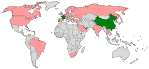 Countries that hosted F1 Powerboat races in 2015, shown in green. Former host nations are shown in pink.