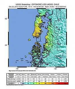 - 1 2 3 4 "M7.6 – 39km SSW of Puerto Quellón, Chile". United States Geological Survey. Retrieved December 25, 2016.