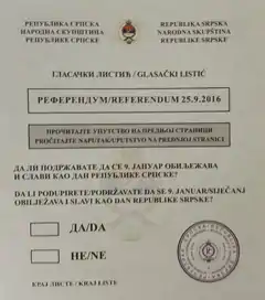 - ↑ "Referendum on Republika Srpska Day - first in a series of referendums". The Srpska Times.