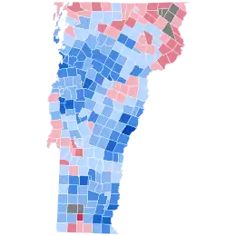 Vermont Senator and Democratic primary candidate Bernie Sanders, who had endorsed Clinton after she won the primary, received 5.7% of the vote through write-ins, the highest write-in draft campaign percentage for a statewide presidential candidate in history.[3] Libertarian nominee Gary Johnson, received 3.1%, and Green Party nominee Jill Stein received 2.1%.[4] Trump's 29.76% vote share is the worst for a Republican presidential nominee in Vermont history.
