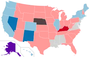 Democrats won both chambers in the Nevada Legislature and the New Mexico House of Representatives, while Republicans won the Kentucky House of Representatives for the first time since 1922, the Iowa Senate, and the Minnesota Senate. The Alaska House of Representatives flipped from Republican control to a Democrat-led coalition majority, and the Connecticut State Senate went from Democratic control to tied control.[2] Meanwhile, the New York Senate went from Republican to a Republican-led coalition.