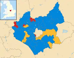 ![]() Map showing the results of the 2017 Leicestershire County Council elections. | ||||||||||||||||||||||||||||||||||||||||