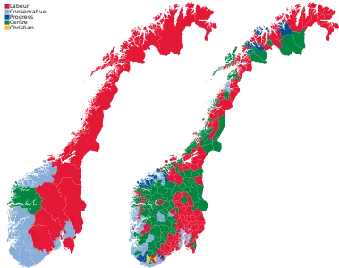 - ↑ "Valgresultat.no". Valgresultat.no. Retrieved 2017-09-11.