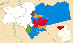 | Party | Seats | Gains | Losses | Net gain/loss | Seats % | Votes % | Votes | +/− | ||