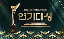 The 2020 KBS Drama Awards (Korean: KBS 연기대상; Hanja: KBS 演技大賞; RR: KBS Yeon-gi Daesang), presented by Korean Broadcasting System (KBS),[2] was held on 31 December 2020 at KBS Hall in Yeouido, Seoul. It was hosted by Jo Bo-ah, Lee Sang-yeob, Kim Kang-hoon and Do Kyung-wan. Considering the resurgence of COVID-19, the show was held without on-site audience.[3][4] The show aired on 31 December at 20:30 (KST).[5]