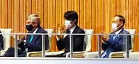 - ↑ The Tokyo Organising Committee of the Olympic and Paralympic Games announced that the number of attendees at the closing ceremony was about 4,500 people from the athletes of each country and region, about 850 people from the Games such as members of the IOC, and guests, and about 4,000 people from the media. "東京五輪閉会式始まる 日本選手団は約90人参加、侍マー君や石川佳純ら - 東京オリンピック2020 [2021年8月8日20時37分]" (in Japanese). 日刊スポーツ. Archived from the original on 8 August 2021. Retrieved 13 August 2021.