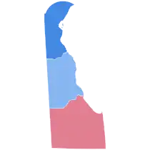 The 2020 United States presidential election in Delaware was held on Tuesday, November 3, 2020, as part of the 2020 United States presidential election in which all 50 states plus the District of Columbia participated.[2] Delaware voters chose electors to represent them in the Electoral College via a popular vote, pitting the Republican Party's nominee, incumbent President Donald Trump from Florida, and running mate Vice President Mike Pence from Indiana against Democratic Party nominee, former Vice President Joe Biden, and his running mate California Senator Kamala Harris. Delaware has three electoral votes in the Electoral College.[3]