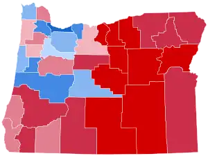 Biden won Oregon by 16.08% an increase from Hillary Clinton's 11% victory margin in 2016. No Republican presidential candidate has won Oregon since Ronald Reagan of neighboring California in 1984. Biden flipped two counties Trump won in 2016: Marion County, home to the state capital of Salem; and Deschutes County, anchored by fast-growing Bend. This marked the first time since 1964 that a Democrat won an outright majority in Deschutes County, although Democratic presidential nominees in 1976 and 1992 had carried the county with pluralities.[5]