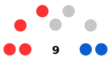 6 of the 9 seats in the Senate 5 seats needed for a majority | ||||||||||||||||||||