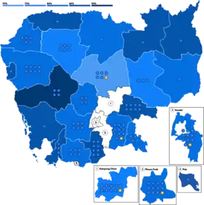 - ↑ "Hun Sen claims landslide win in Cambodia election, possibly landing 120 out of 125 seats - Khmer Times". 23 July 2023. Retrieved 24 July 2023.
