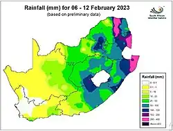 - ↑ Rae, Kevin (2022-02-13). "Heavy rain and flooding observed across eastern South Africa, with further rainfall anticipated for the northern and north-eastern provinces" (PDF) (Press release). South African Weather Service.