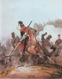 Uhlan regiments were used in close attack or pursuit of an enemy. Lances adorned with banners and streamers were used when routing the enemy from the field. The troopers were also typically issued with a single action carbine rifle, a pistol and a dress sabre (which had the regiment, unit number and insignia engraved into the blade). On release from service, an officer was responsible for his own clothing for the trip home. If he had brought his own clothing in, he was expected to wear it out.