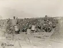 Shortly after the regiment's arrival in France, they were informed that they would be sent to serve in Italy instead.[1] They arrived there in July 1918 in response from an urgent request from the Italian Government. In addition to the American infantry force, 30 American ambulance sections, a base hospital, and 54 airplane pilots also served with the Italian Army. The American pilots, as members of the Italian bombardment squadrons, engaged in bombing raids behind Austrian lines, being especially active during the progress of the Vittorio Veneto offensive.[2]