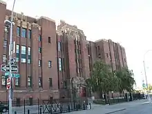 The rest of the block was purchased by the city in 1929, in preparation for the administration building's construction.[19] In 1930, the Armory Board submitted plans for the $1 million administration building to the New York City Board of Estimate. The new building would include a shooting range, auditorium, mess hall, and rooftop tennis courts.[25] Twelve firms submitted designs for the drill shed,[26] and the commission was ultimately given to the lowest bidder, John S. Van Wart and Sidney Wein.[16][19][27] Work started in 1931 after the C & W Construction Company were named as the contractors.[26] The administration building was completed in 1933.[19] However, the New York Daily News reported in January 1934 that the 369th Regiment had refused to accept title to the administration building, citing various work defects such as a leaky roof. As a result, the Armory Board opened an investigation into the construction of the 369th Administration Building.[28]