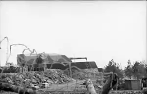 Four Drh LC/34 turrets, three of which were originally intended to re-arm the Gneisenau and one completed to the Soviet order, modified for land service, were planned to be emplaced at Paimpol, Brittany and on the Cap de la Hague on the Cotentin Peninsula, but construction never actually began.[13] Construction for two of those turrets was well underway at Blaavand-Oksby, Denmark when the war ended.[14][15]