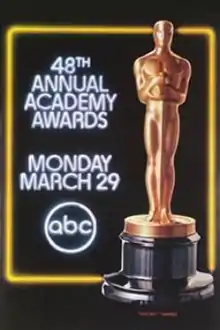 The 48th Academy Awards were presented Monday, March 29, 1976, at the Dorothy Chandler Pavilion in Los Angeles, California. The ceremonies were presided over by Walter Matthau, Robert Shaw, George Segal, Goldie Hawn, and Gene Kelly. This year, ABC took over broadcast rights from NBC and has maintained the rights to this day.