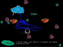 Gillmurphy composed detailed notes providing context to the underlying inspiration and process behind the creation of each game.[3] The inspiration behind the games was eclectic, with Gillmurphy citing influences from comic books, literature, music and other independent games as reference points. Some games, including Anxiety World and Night Thoughts, were inspired by personal experiences, dreams and feelings of disorientation arising from working on the game at very early or late hours of the day. Many games were also developed as continuations of previous or half-completed projects.[3]