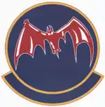 - ↑ Approved 11 September 1944. Description: Over and through a yellow lemon disc, border triparted red, white, and blue, a prehistoric bat, in flight, red and white, with wings black, trimmed yellow, snorting steam from the nostrils, and grasping a small black aerial bomb in each foot.