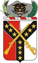 - Crest – The wreath, consisting of a grapevine and palm branch refers to the citation awarded the unit for campaigns in Colmar and Tunisia. The stylized mountain signifies the strength and steadfastness of the Regiment. The panther crushing the tank, adapted from the Tank Destroyer shoulder sleeve insignia, recalls the unit's history.