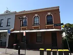 Two storey mid-Victorian terrace constructed c. 1864, decorative window surrounds to top floor. Cast iron lace and posts. Two bedrooms plus sleep-out. Storeys: Two; Construction: Paint finished rendered masonry with decorative window box ledges, and key stones above arched first floor windows. Corrugated galvanised iron roof, cast iron lace columns and ground floor balustrading. Style: Victorian Italianate.[1]