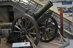 The bombardment programme was spread over five days, U, V, W, X and Y before the assault was launched on Z day.[13] 68th Siege Bty opened fire on V day (25 June), but the trench bombardment and barbed wire-cutting[lower-alpha 2] was unsatisfactory because ground mist prevented observation and the BE2c observation aircraft of No 8 Squadron Royal Flying Corps that was supposed to be spotting fall of shot was out of contact for much of the day. Most of the battery's firing was blind 'searching and sweeping' fire on 88th Siege Bty's behalf. No 2 Gun suffered a premature burst, which wounded five of the detachment, though two of them remained on duty. W Day was much the same, Maj Mayne complaining that he had no aerial observation (though there were two BE2cs in the air all day), and the battery's OP was itself under heavy shellfire. Two salvoes of German Shrapnel shells burst near the battery without causing casualties. Ammunition supply was also a problem because the track of the Decauville light railway delivering shells to Sailly collapsed in the wet weather. On X day the battery fired its full programme, blind in the morning because of the poor communications with the aircraft, but with good observed shooting in the afternoon. Because of poor weather on Y day, the attack was postponed for two days, and the additional days (Y1 and Y2) were used for further bombardment. On Y1 the battery had easy observation and reported good shooting, though ammunition was short and the aircraft's wireless broke down.[15][16] Overall, the damage caused to the German positions was insufficient to suppress the defenders.[17]