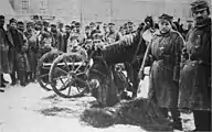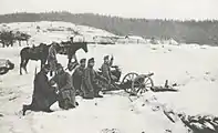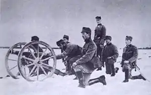 ![]() A Gebirgsgeschütz M 75 in action with the Polish Legion. | |