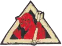 The 96th Aero Squadron was ordered to Amanty Airdrome in the Toul Sector and became established as a bombing unit in active service against the enemy. The flying equipment of the squadron consisted of ten Breguet 14B.2 aircraft, which had been transferred by the 7th Aviation Instruction Center. The planes were in very poor condition, having been used for instruction since December 1917, and were in constant need of major repairs even before used as bomb carriers. At Amanty ten more teams, who had come there a month before, were assigned to the squadron to complete its organization.[3] Just before embarking upon its first aerial warfare, the squadron decided upon its insignia, a black triangle outlined by a white strip enclosing the profile of a red devil thumbing his nose at the ground with his right hand. In his left, he held a white bomb. This distinctive emblem was designed by the squadron's talented graphic artist, Harry O. Lawson.[7]