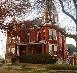 The A. T. Averill House is a historic building located in Cedar Rapids, Iowa, United States. Local architects Sidney Smith and W.A. Fulkerson designed this 212-story, brick Late Victorian home. It was completed in 1886 for farm implement dealer Arthur Tappan Averill. This is a more restrained version of the High Victorian style.[2] The house features a truncated hip roof, a 212-story polygonal bay, and a rectangular tower set on the diagonal. The carriage house/barn behind the house is of a similar design, but older.[2] The house was listed on the National Register of Historic Places in 1978.[1]
