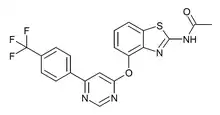 AMG-517 is a drug which acts as a potent and selective blocker of the TRPV1 ion channel.[1][2] It was developed as a potential treatment for chronic pain, but while it was an effective analgesic in animal studies it was dropped from human clinical trials at Phase I due to producing hyperthermia as a side effect, as well as poor water solubility. It is still used in scientific research into the function of the TRPV1 channel and its role in pain and inflammation, and has been used as a template for the design of several newer analogues which have improved properties.[3][4][5][6][7]
