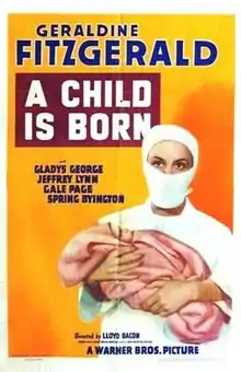 A Child Is Born is a 1939 American drama film directed by Lloyd Bacon and written by Robert Rossen. The film stars Geraldine Fitzgerald, Jeffrey Lynn, Gladys George, Gale Page, Spring Byington, and Johnnie Davis. The film was released by Warner Bros. on December 17, 1939.[1][2] It was a remake of the 1932 film Life Begins starring Loretta Young. A further remake Love Story was made in Italy in 1942.