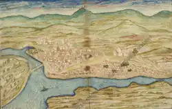 A Moureira was created as a maritime suburb where the guild of sailors of the city lived. The name comes from moira, from the Latin muria, the brine, sale muria used in the salting of sardines, salt being an essential product for the preservation of fish.[6] During the Middle Ages and most of the early modern period, the port of Pontevedra was the most important in the Rías Baixas. During this period, the city was granted several royal privileges. In 1229, Alfonso IX of León granted it an exclusive privilege for the production and distribution of fish throughout the kingdom, and in 1238, Ferdinand III of Castile granted it the manufacture of fish fat.[7] In 1452, John II of Castile granted Pontevedra the title of loading and unloading port of Galicia, located on the three large quays of the Moureira de Arriba, where goods from Galicia were loaded and unloaded.[8][9][10] In the 15th century, the Santa María caravel, known as La Gallega, was built in the shipyards of Pontevedra. It took Christopher Columbus to the discovery of America in 1492.[11][9] [12]