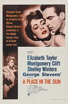 A Place in the Sun is a 1951 American drama film based on the 1925 novel An American Tragedy by Theodore Dreiser and the 1926 play, also titled An American Tragedy. It tells the story of a working-class young man who is entangled with two women: one who works in his wealthy uncle's factory, and the other a beautiful socialite. Another adaptation of the novel had been filmed once before, as An American Tragedy, in 1931. All these works were inspired by the real-life murder of Grace Brown by Chester Gillette in 1906, which resulted in Gillette's conviction and execution by electric chair in 1908.[1]