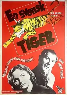 A Swedish Tiger (Swedish: En svensk tiger) is a 1948 Swedish war drama film directed by Gustaf Edgren and starring Edvin Adolphson, Erik Berglund and Margareta Fahlén.[1] The film's sets were designed by the art director Nils Svenwall. Its title refers to the wartime propaganda campaign A Swedish Tiger encouraging inhabitants to avoid careless talk.