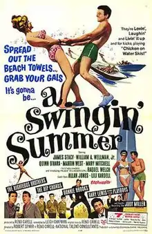 A Swingin' Summer is a 1965 comedy film in the beach party genre. It was directed and co-written by Robert Sparr. Raquel Welch stars in her first featured film role and makes her singing debut in the film.[1]