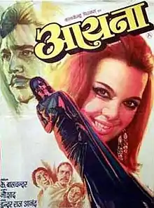 Aaina (transl.Mirror) is a 1977 Indian Hindi-language drama film written and directed by K. Balachander. A remake of the Tamil film Arangetram (1973), it stars Mumtaz in the lead role with A. K. Hangal, Nirupa Roy, Lalita Pawar, Jayasudha and Madan Puri in supporting roles. This film has a special appearance by Rajesh Khanna. The film is about a brahmin girl becoming a sex worker to support her large family. After this film, Mumtaz did not feature in any films for thirteen years until Aandhiyan (1990).
