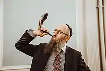 Raskin was featured in the February 2006 issue of National Geographic magazine about the Chabad Lubavitch movement, with a large photo of Raskin and his wife instructing a new female congregant in the recitation of blessings over the Sukkot festival's Lulav and Etrog (palm frond and citron) as they stood in a high wind on the Brooklyn Promenade at the beginning of the article.[19][20] In October 2011, Raskin commented for ABC News' Good Morning America program about the alleged infidelity existing between Ashton Kutcher and Demi Moore, both of whom had been documented attendees and students at the Los Angeles Kabbalah Centre.[21]