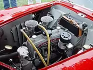 The engine in this car is a Fiat 1100 B engine fitted with a Cisitalia head, a dry sump, two Weber carburetors, and producing about 80 hp (59 kW).[3] This car is currently in the O'Sullivan Square Museum in San Diego.